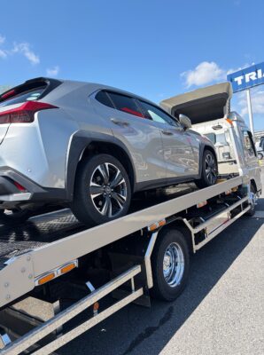朝イチは書類の手続きがあったので、積載車に車を積み込んで運輸支局へ。手続きが終わったので保証継承を受けるためにディーラーへ。
